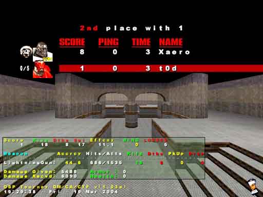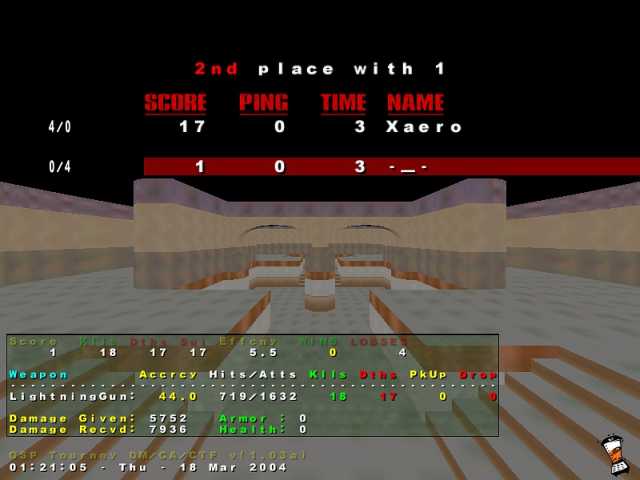 Niestety z wyniku jestem srednio zadowolony gdyz zostal on zdobyty metoda N!TY, przy uzyciu /kill. Metody tej nie pochwalam ale poniewaz nie przewidzialem jej w regulaminie nie mege jej juz zabronic. Jednakze w nastepnej edycji /kill bedzie zabroniene - bot jakos nie moze sobie zrobic killa :/