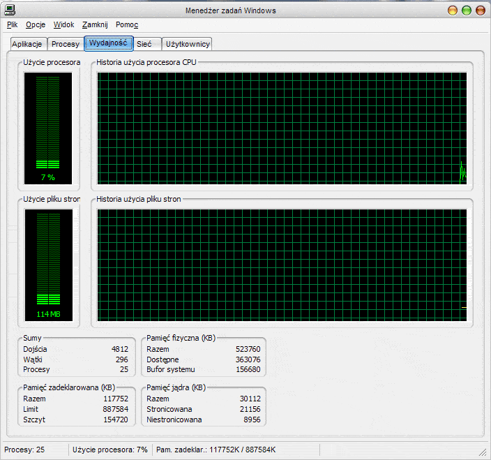 Wracam kurde ze szkoły i mi stara mówi że komputer "się zepsuł, nie włącza się". Ok, siadam, odpalam no i patrzę że Windows ładuje się już od dobrych dwóch minut, a niebieski pasek nadal się przesuwa a dioda od dysku nie świeci. Ok, restartuje, odpalam tryb awaryjny. To samo, ładowanie systemu w nieskończoność. Wypróbowałem wszystkie opcje dostępne pod F8. Nic, ciągle to samo. No dobra, każę mu się włączać normalnie i idę sobie zrobić obiad. Wracam z obiadu i zdziwiony patrzę że jednak się włączył cwaniak. No ale patrzę ze załadowała się sama tapeta, reszty shella nie ma. Patrzę myszka działa, odpalam skrótem taskmenagera. Wszystkie standardowe progzy załadowane. No to biorę "nowe zadanie", wpisuję "windows*" i cała reszta startuje wporządalu. Z pozoru system wygląda ok, lecz :